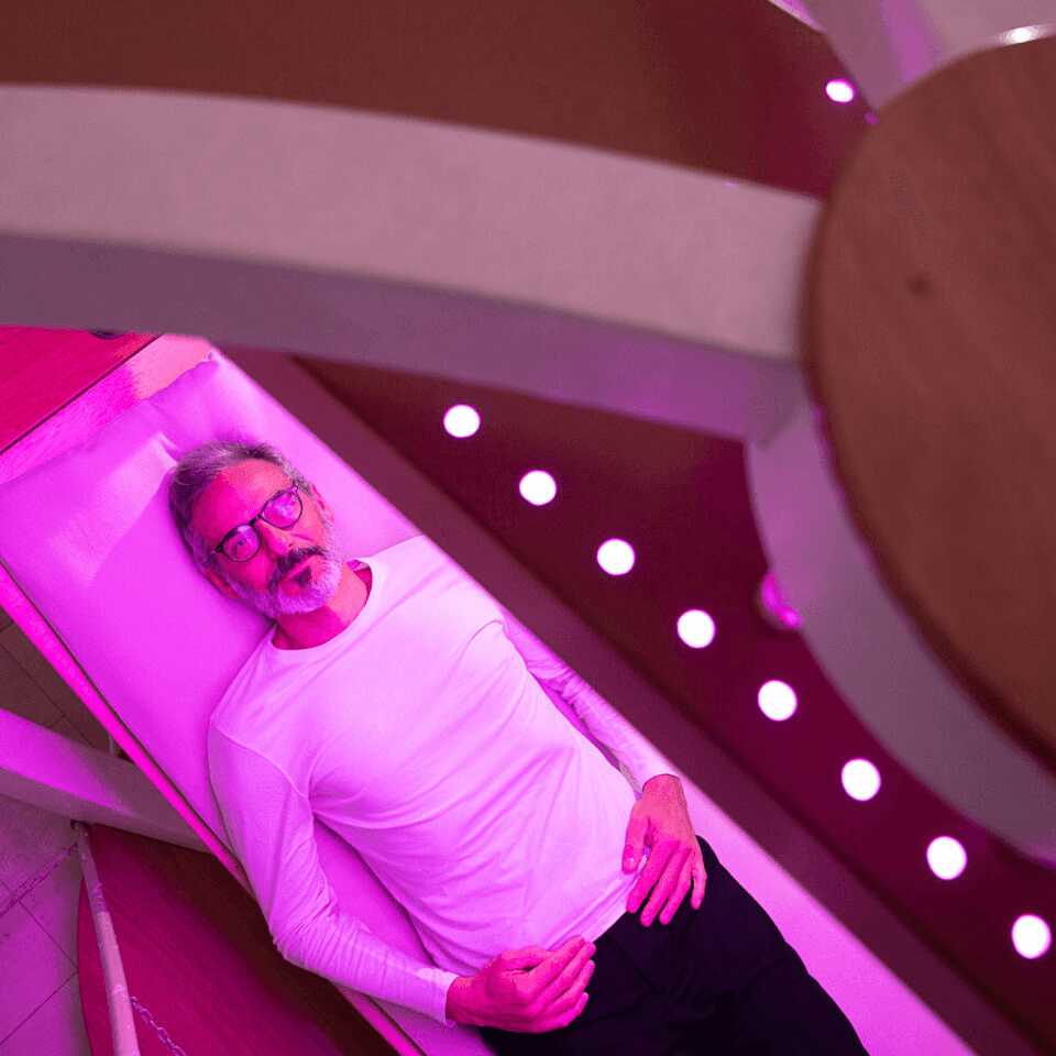 Sincronía total: Un software coordina la luz con la frecuencia del sonido, mientras que el olfato y el gusto se integran mediante hierbas específicas (como cúrcuma o diente de león) que refuerzan la función biológica de la sesión, ya sea depurativa o estimulante.